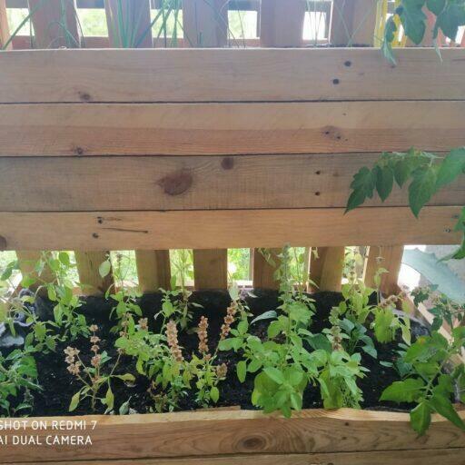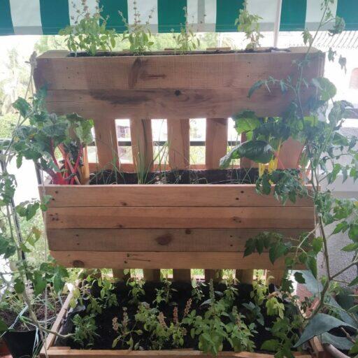 En effet, ce genre d’installation est très pratique pour optimiser l’espace et l’exposition au soleil, grâce à sa mobilité. J’ai pu et je peux encore aujourd’hui cultiver des piments, du basilic, des tomates cerise, des blettes et des oignons.