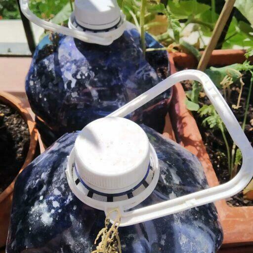 J’ai cru pouvoir utiliser les bombonnes comme supports de culture verticale.