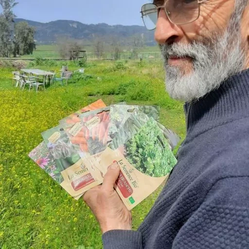 Piensa cultivar en su nueva casa y en sus parcelas cercanas al El Quiñón. Sólo podía ofrecerle las hermosas semillas de las hermosas empresas de semillas como : Semillas ecológicas y El huerto de Santé. Le pregunté por qué estaba tan apegado a la naturaleza y qué era importante para él. Como una planta trasplantada, esto es lo que me confió con sinceridad: