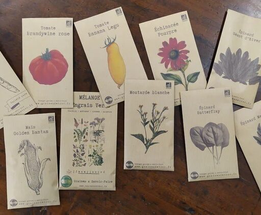 Una parte de la cosecha se destina a la recolección de semillas, que luego pone a la venta la asociación Graines de Troc, un proyecto que permite la supervivencia de ciertas variedades raras, además de continuar con la dinámica de conservación de semillas que existe en el mundo de la jardinería.
