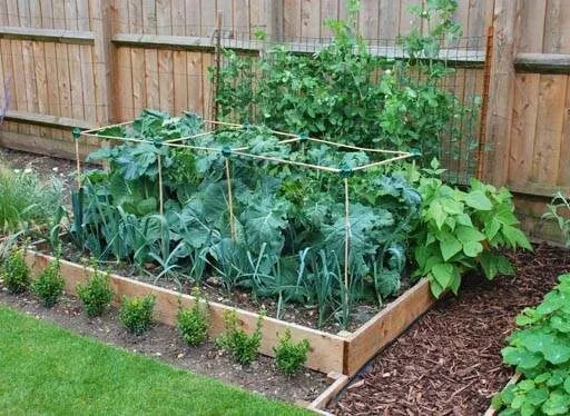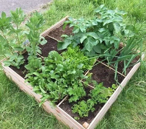 Culture en pleine terre organisée en carré potager, selon les bonnes associations des plantes