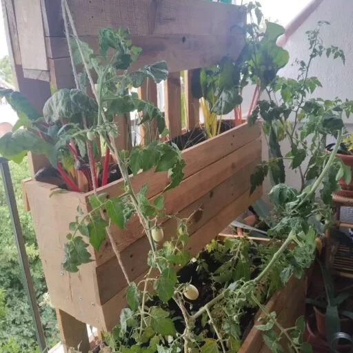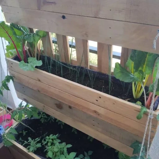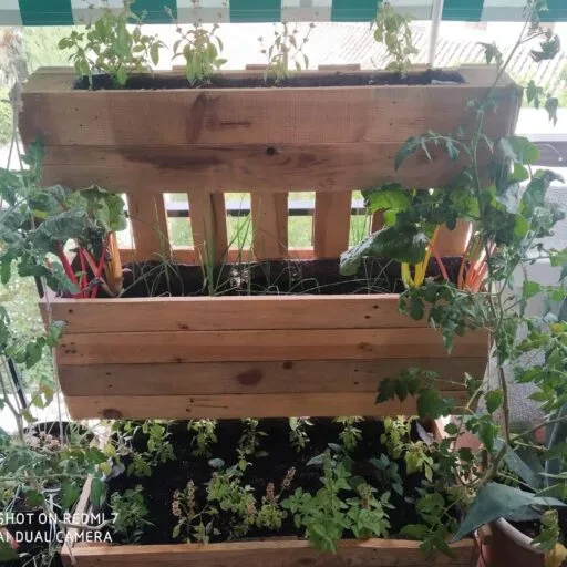 Culture en bac de palettes écologiques avec différentes variétés de légumes